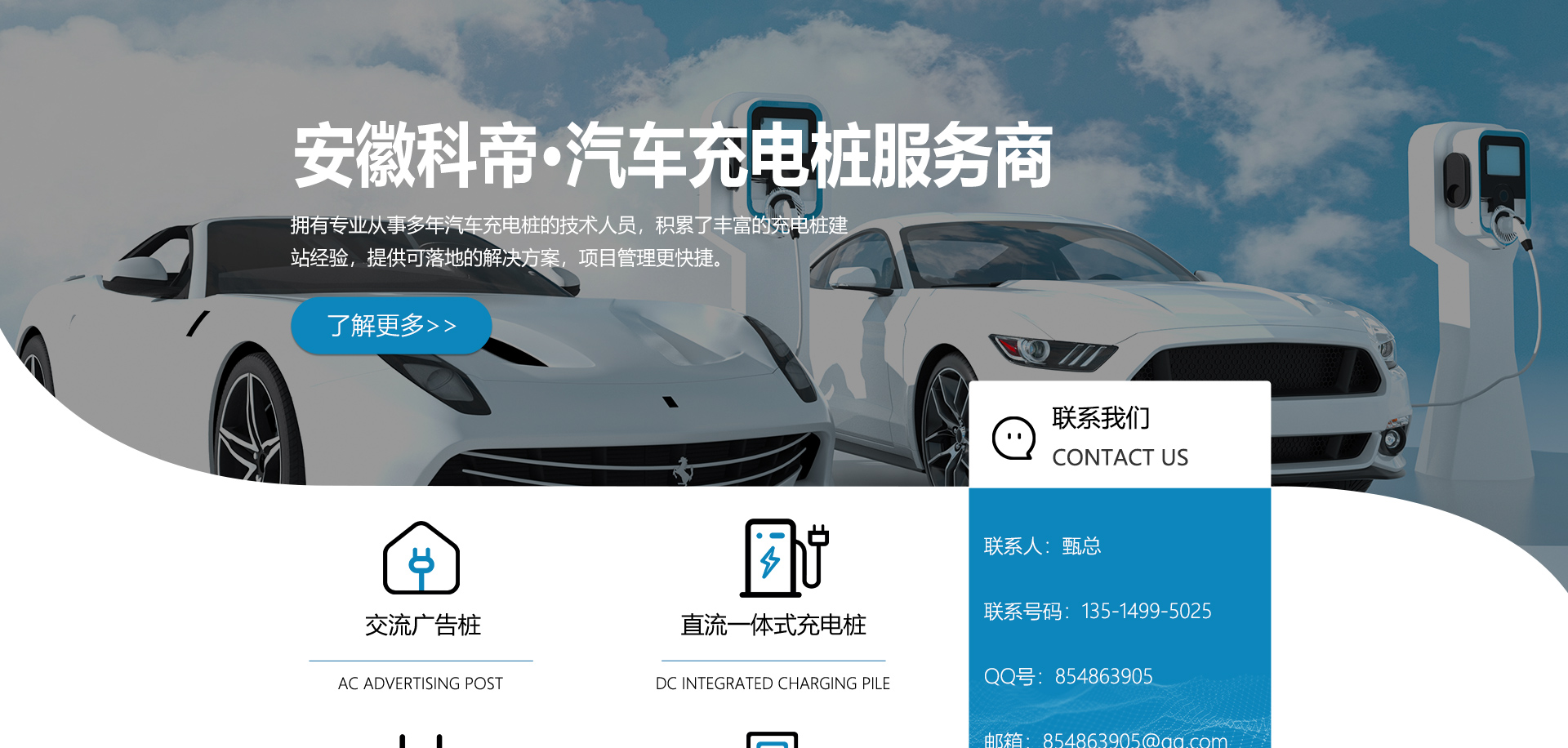 關(guān)于我們安徽科帝新能源科技有限公司坐落于安徽省會-合肥,是一家研發(fā)、生產(chǎn)智能充電樁設(shè)備,汽車充電站后臺監(jiān)控管理系統(tǒng)和生產(chǎn)高壓開關(guān)設(shè)備的企業(yè).由專門的研發(fā)團隊、管理團隊按照現(xiàn)代化企業(yè)制度規(guī)范設(shè)立的有限責(zé)任公司。致力于為能源智能、安全的應(yīng)用和節(jié)能減排提供整體的技術(shù)與產(chǎn)品解決方案。科帝集研發(fā)、設(shè)計、生產(chǎn)、銷售以及服務(wù)于一體,在電動汽車充電方案,充電設(shè)施建設(shè)和城市配電方面擁有廣泛的技術(shù)研究及經(jīng)驗積累,為客戶提供安全、智能的充電設(shè)備及充電運營站建設(shè)一體化解決方案。并堅持以人為本、質(zhì)量為先、顧客至上、不斷創(chuàng)新”的企業(yè)理念,為能源行業(yè)的發(fā)展、節(jié)能減排做出重大的貢獻(xiàn)。公司擁有豐富的產(chǎn)品種類,目前科帝已研發(fā)生產(chǎn)了三十多種產(chǎn)品,充電設(shè)備有直流一體式充電樁、直流分體式充電樁、直流廣告樁、交流廣告樁、廣告一體樁、壁掛交直流樁;等多種充電設(shè)備;每一款產(chǎn)品都是精心打造,力求為客戶提供優(yōu)越的用戶體驗。展望未來科帝將通過持續(xù)的自...